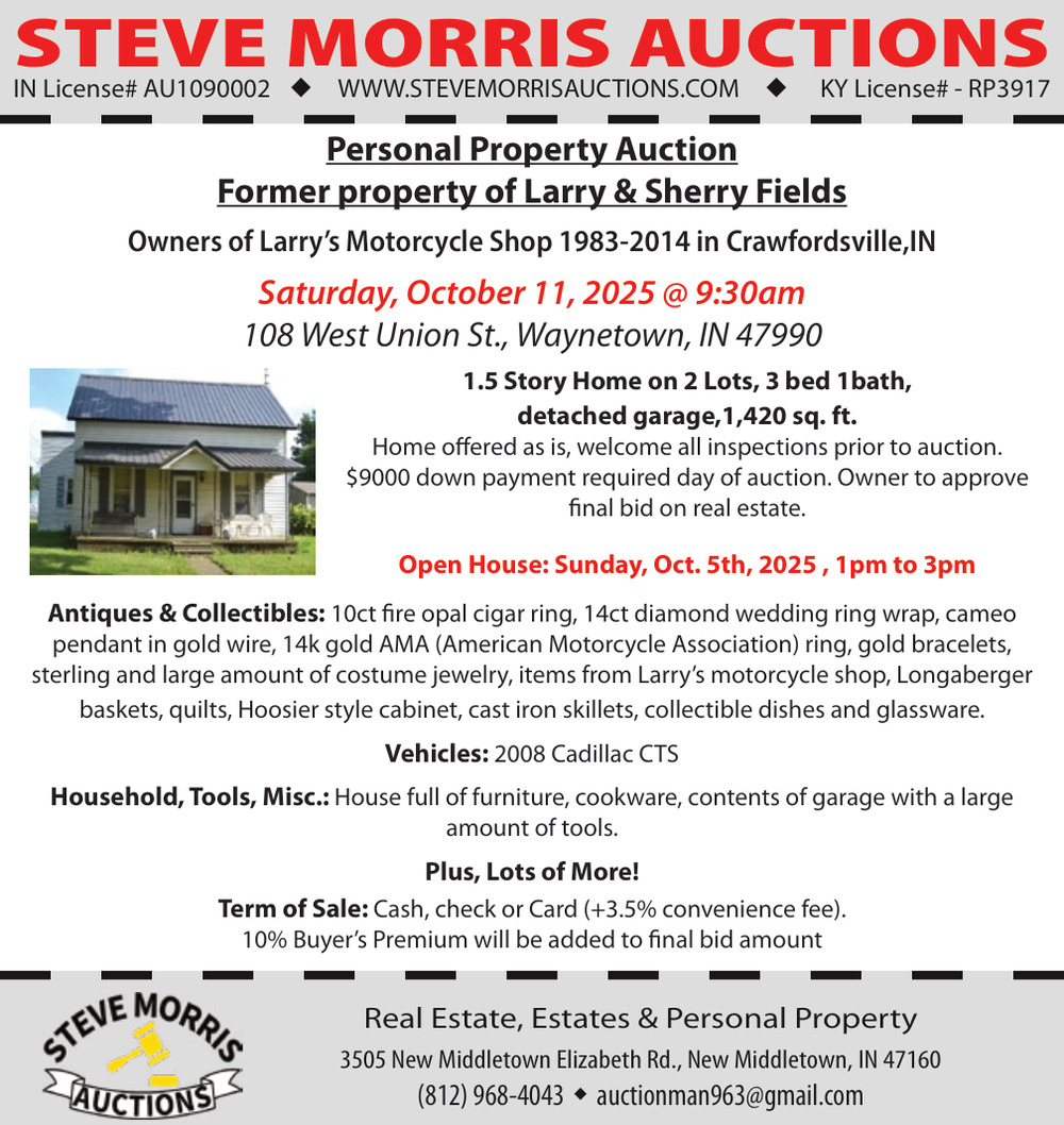 Oct 01, 2025. Steve Morris Auctions Auction Ads from Journal Review
