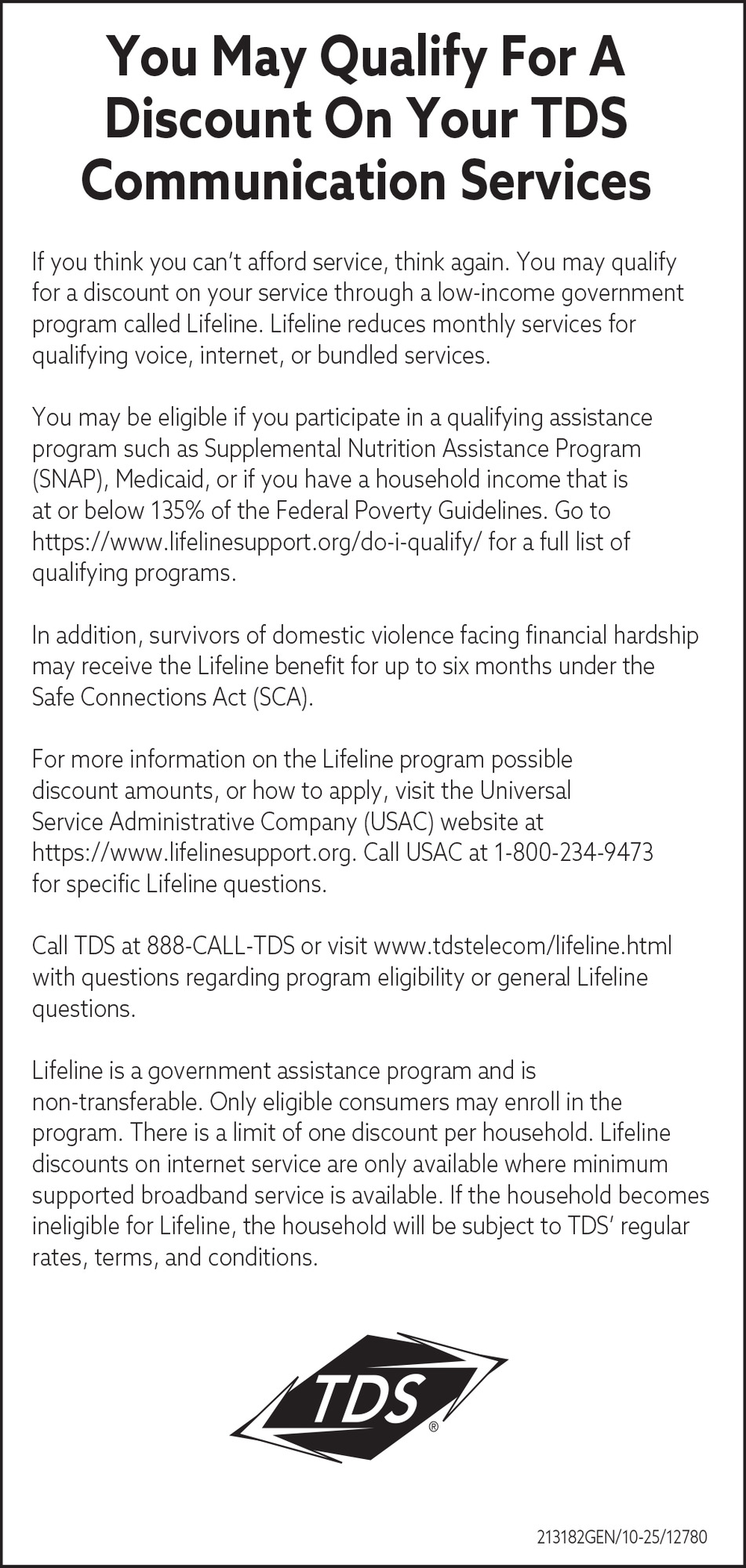 Dec 11, 2025. TDS Telecom Ads from Journal Review