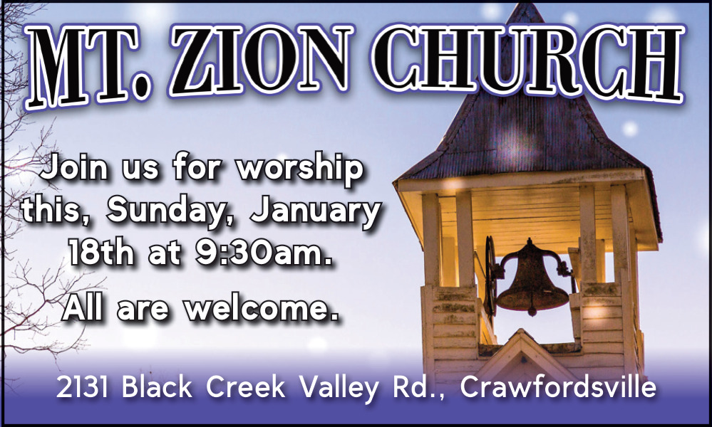 Ads for Mt. Zion Church in Crawfordsville, IN